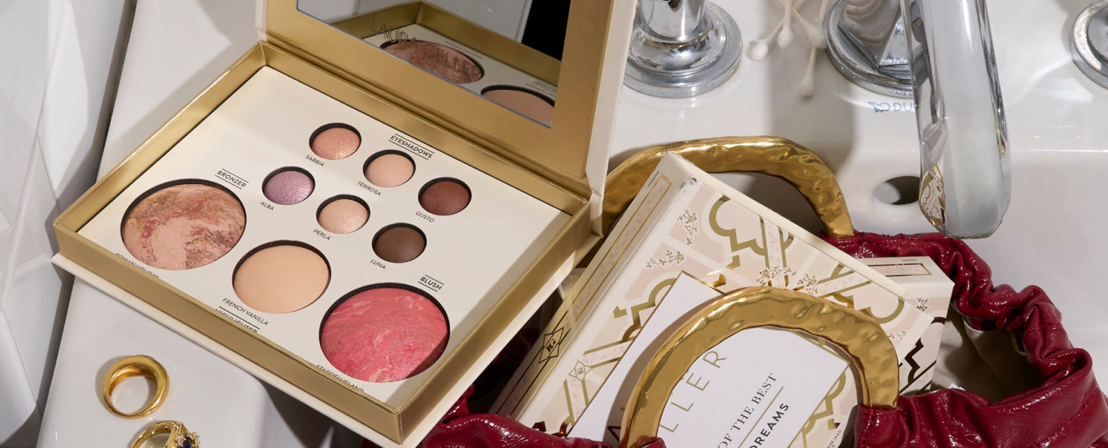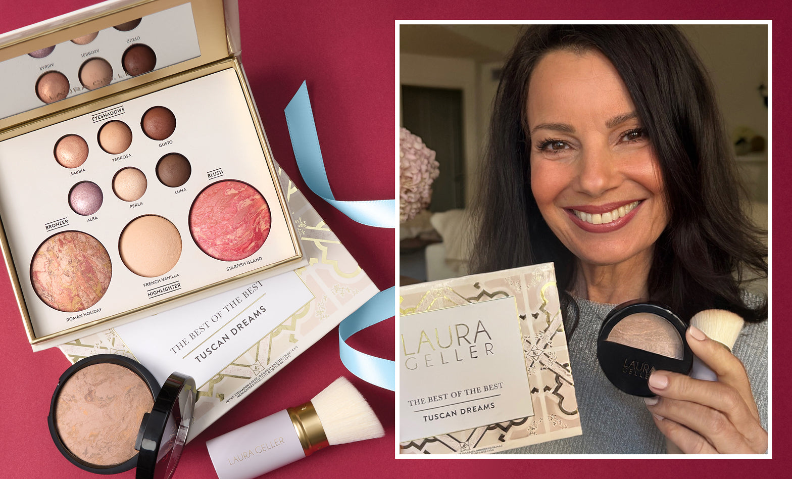 This palette includes six Baked Eyeshadows, a Baked Highlighter, a Baked Bronze-n-Brighten and a Baked Blush-n-Brighten in some of Laura Geller's most iconic shades.
